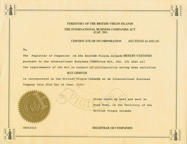BVI注册证书